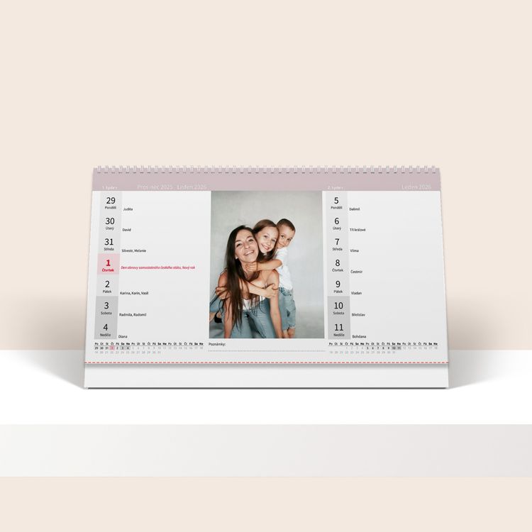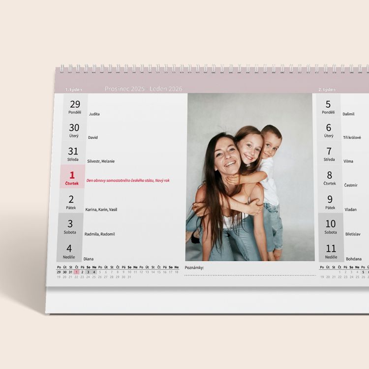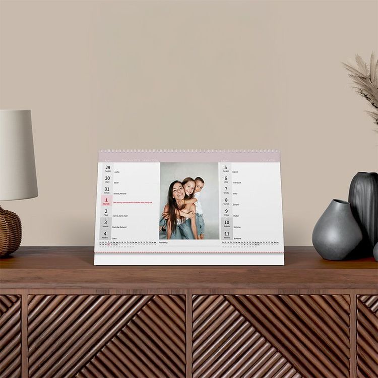 Vytvořte si fotokalendář z vlastních fotografií s přehledným kalendářem. Obsahuje slovenské svátky a jména. Možnost změny barevné šablony.